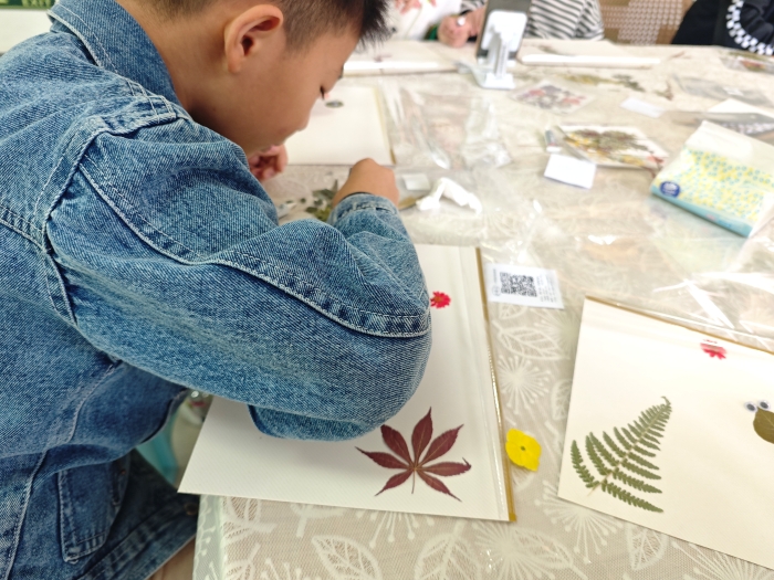 活动前,社区工作人员和志愿者组织孩子们收集许多不同种类的树叶与花朵,与一本本排列整齐的书籍相得益彰,营造出宁静而美好的阅读环境。活动开始后,小朋友们精心挑选自己喜爱的书籍,安静地享受着阅读的乐趣,完全沉浸在书的世界里。随后,大家以树叶为画布,用落叶为画笔,全情投入到创作中。依据树叶各不相同的形状与颜色,借助剪、粘、画等方式,凭借丰富的想象以及灵巧的小手,粘贴出一幅幅饶有趣味的树叶贴画,充分彰显出秋的神韵魅力。最后,社区工作人员引导孩子们上台将自己的阅读收获和手工作品展示出来。