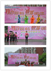 4月23日是世界读书日,翠岭银河社区举办第四届邻里桃花节。本次文艺演出以“相约翠岭 畅享阅读”为主题, 当天的文艺表演有舞蹈《走向复兴》、诗朗诵《读书点亮人生》、小品《翠岭四大才子》、群口快板《中国梦》 等精彩的节目,赢得了观众的阵阵喝彩。 活动现场,社区工作人员向居民们发放书香社区宣传材料,主持人还设计了“书中自有黄金屋下一句是什么”、“林黛玉是哪部名著中的人物”等问答,把活动气氛推向了高潮。